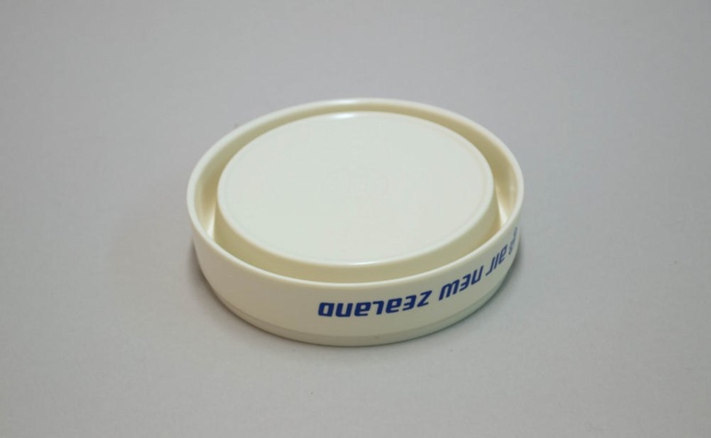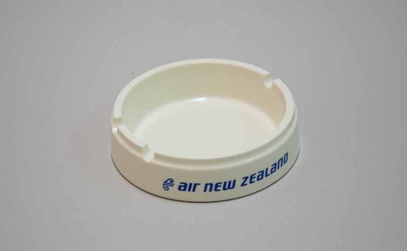 1. Ashtray: Plastic, white. The "logo" and "AIR NEW ZEALAND" is printed around the side of the tray, twice.