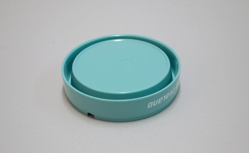 2. Ashtray: Plastic, teal blue. The "logo" and "AIR NEW ZEALAND" is printed around the side of the tray, twice.